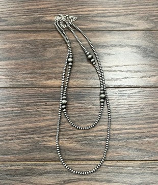 26" Long, Layered 2-strand Navajo Pearl Necklace * 2 strand (22", 26" long) necklace & 5" extender * 22" long, clustered 6mm, 8mm, 10mm navajo pearl necklace * 26" long, 4mm navajo pearl necklace * 25 grams weight * Nickel, Lead & Chrome free