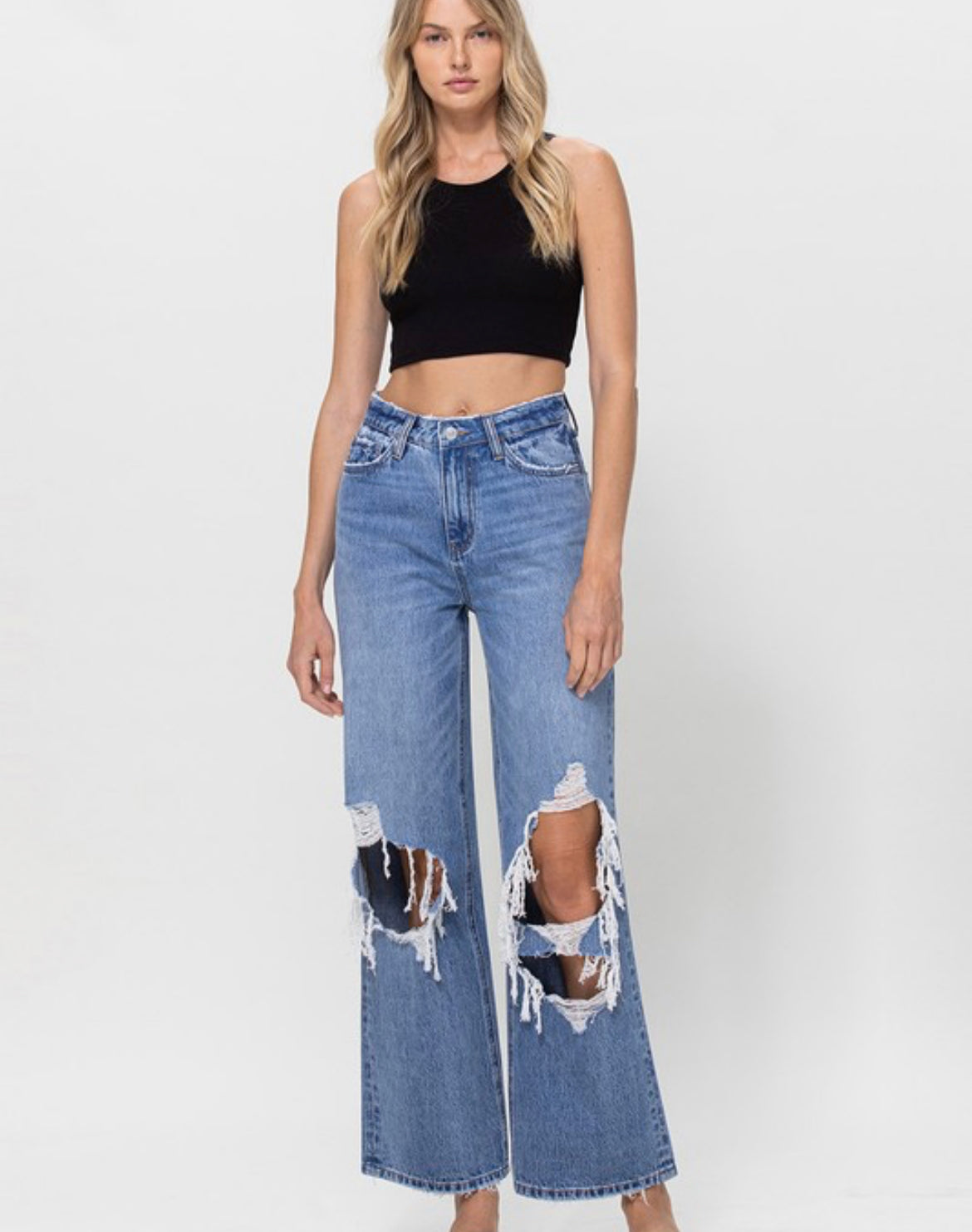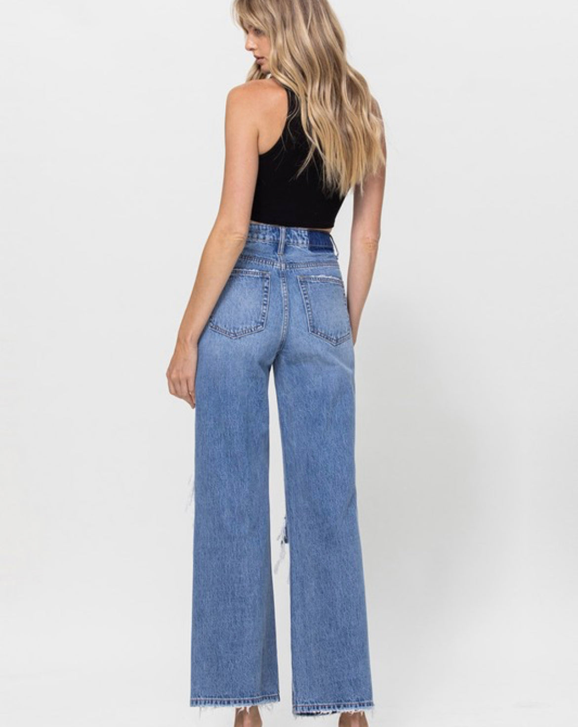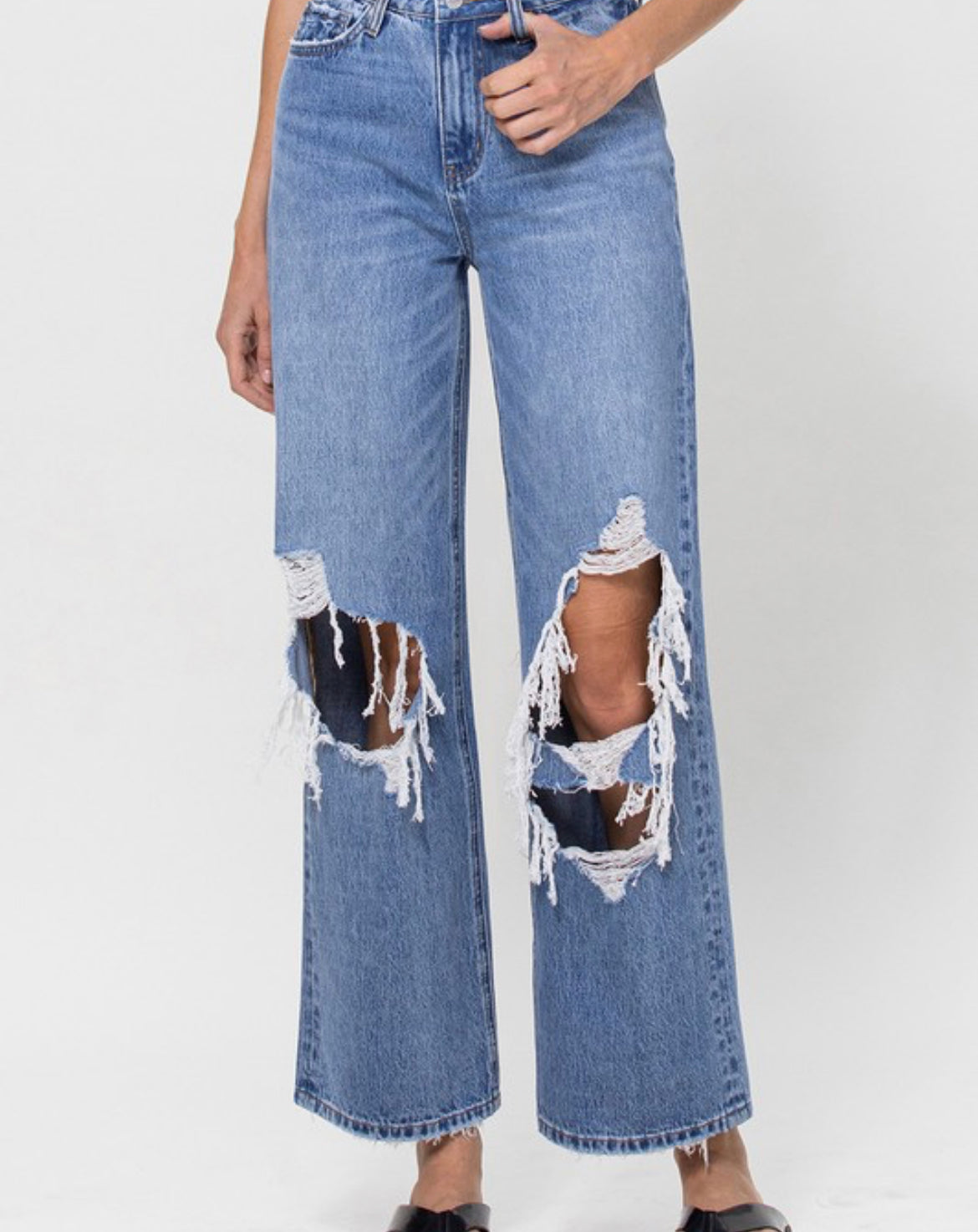 Super fun and comfortable 90's dad jeans. non stretch denim in 100% cotton. Distressed detail, loose fit.