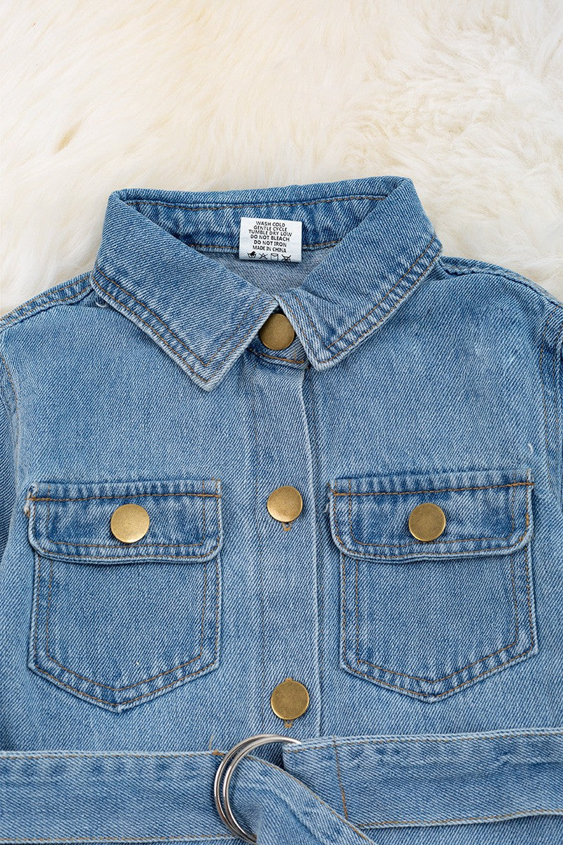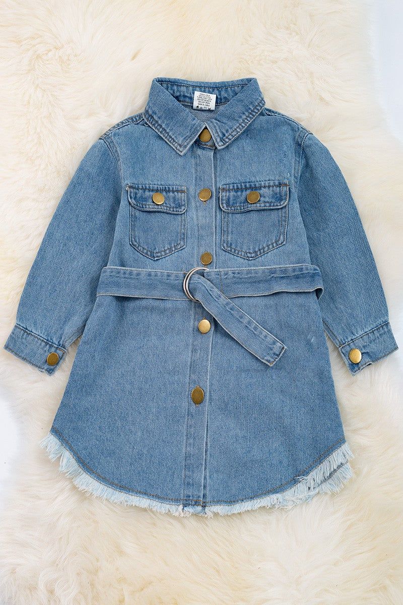 The cutest Little girls light blue denim long sleeve dress! This dress will have even the tiniest cowgirls in style.