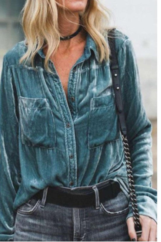 Long Sleeve Velour Velvet Long Sleeve Shirt