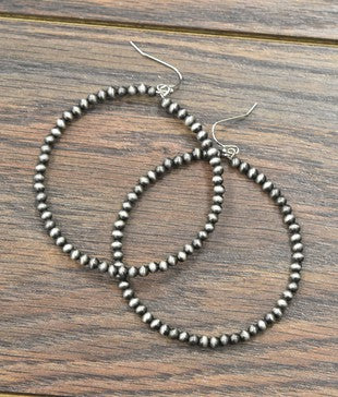 2.5" Long, Tiny 4mm Navajo Pearl, 65mm Hoop Earrings * 2.5" long earrings & fish hook * 2.5"(65mm) diameter hoop * 4mm navajo pearl * Light! Each earring 3 grams weight * Nickel, Lead & Chrome free